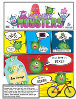 Parents, you and your Youth Member, get access to the MONEY MONSTERS & FRIENDS Quarterly Activities. Learn about money and finance with fun puzzles, games and coloring pages with the loveable MONEY MONSTERS & FRIENDS.